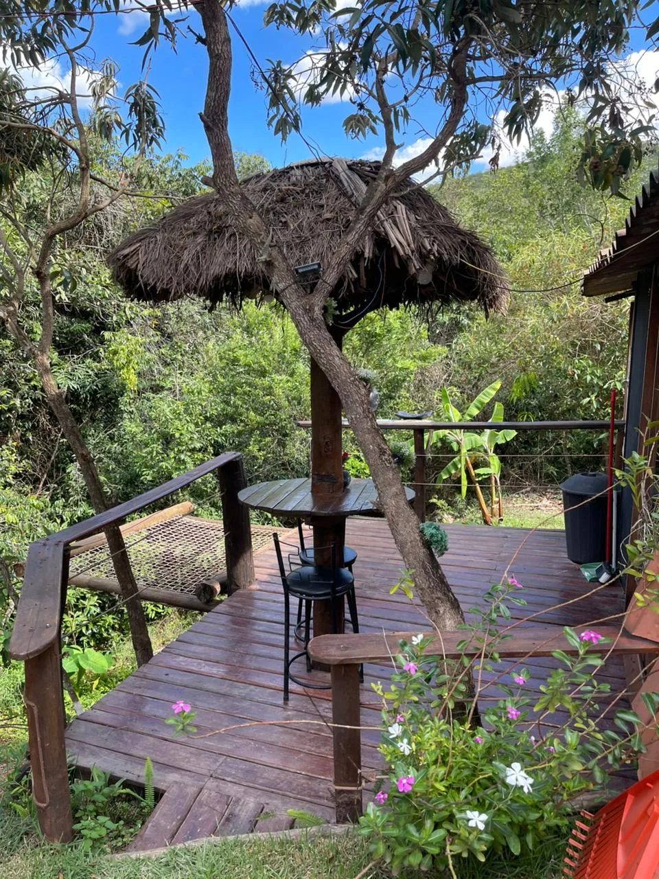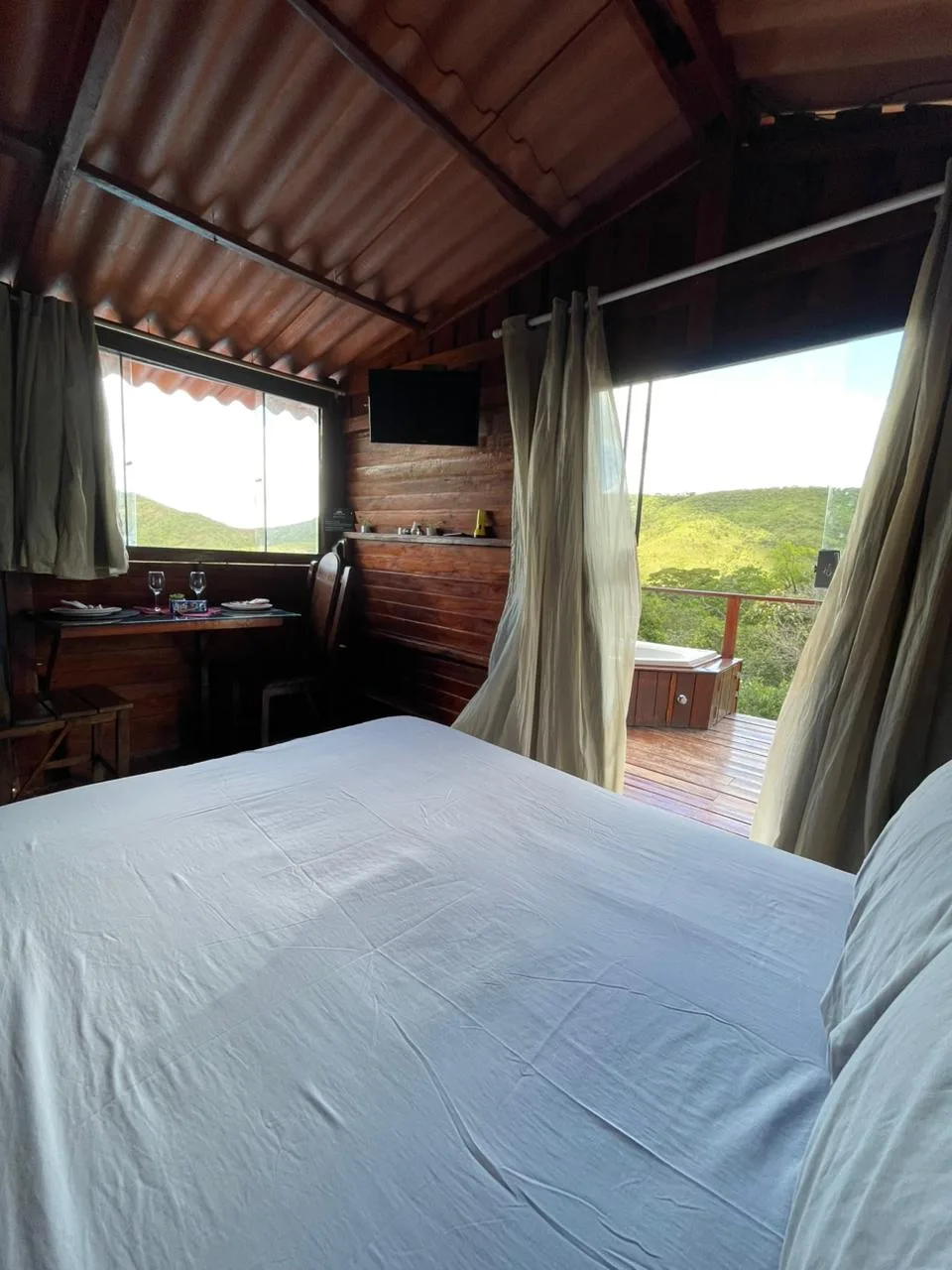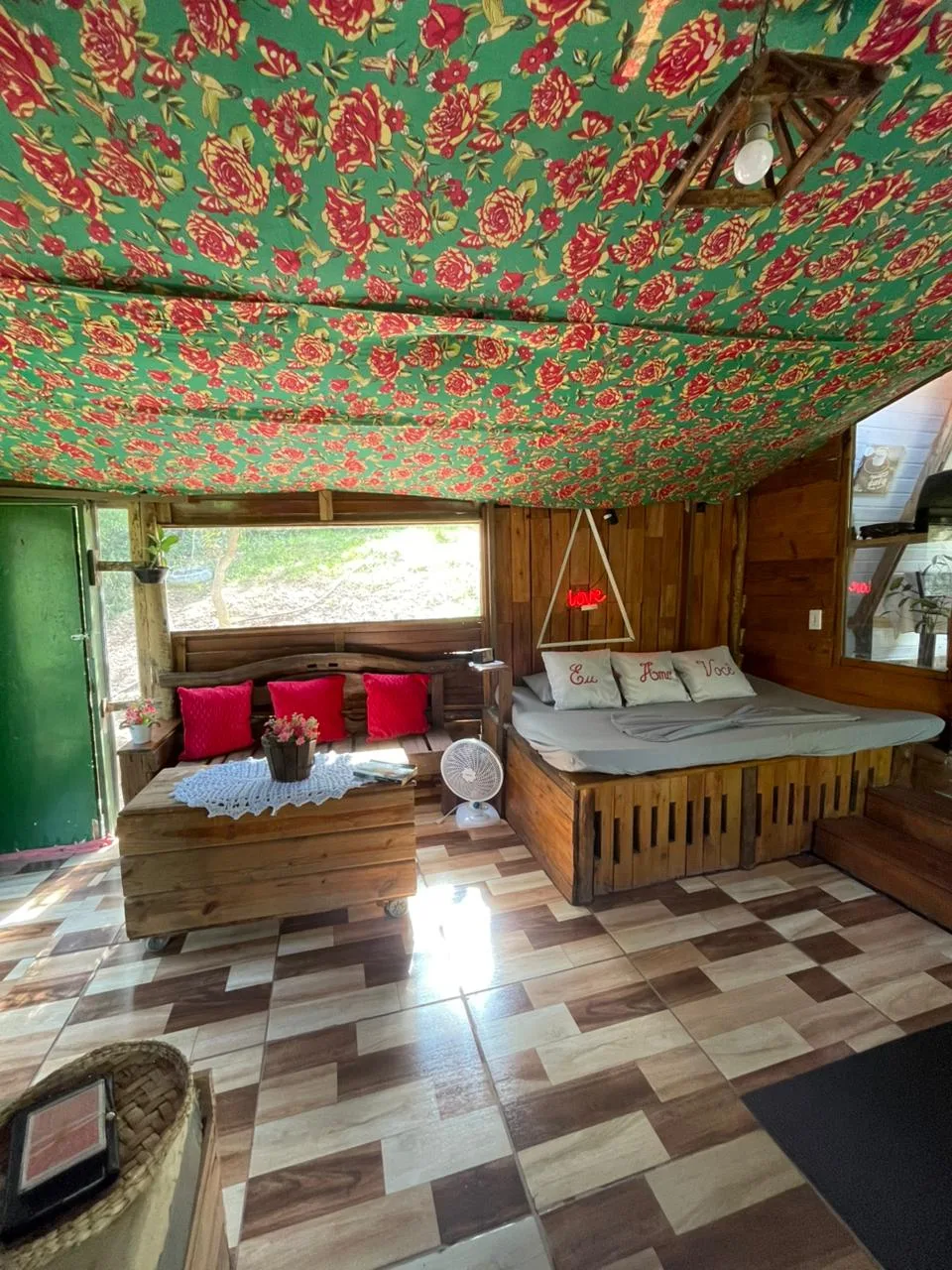 Acomodações rústicas que proporcionam conforto e liberdade.