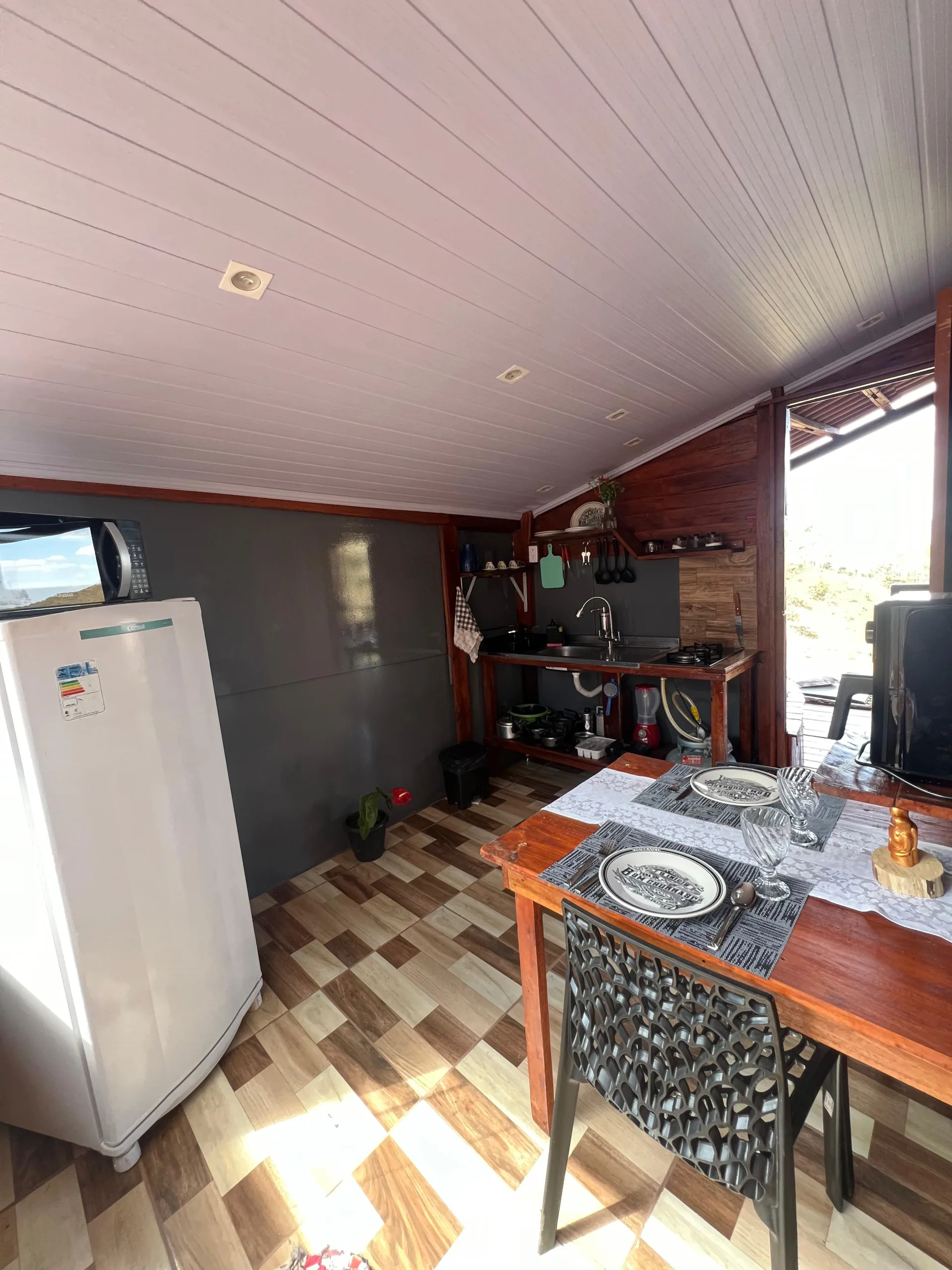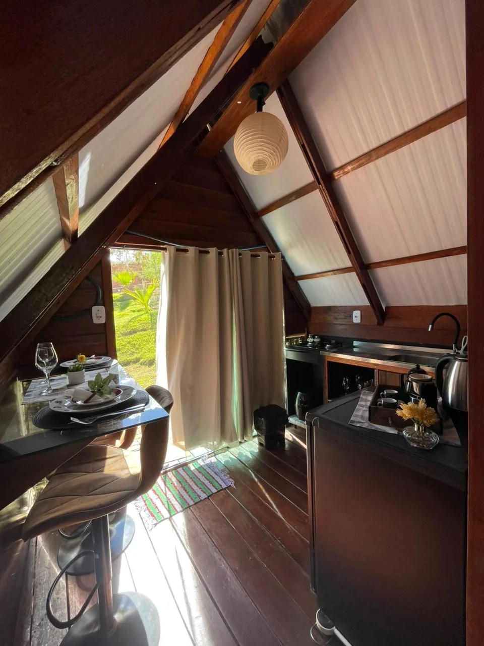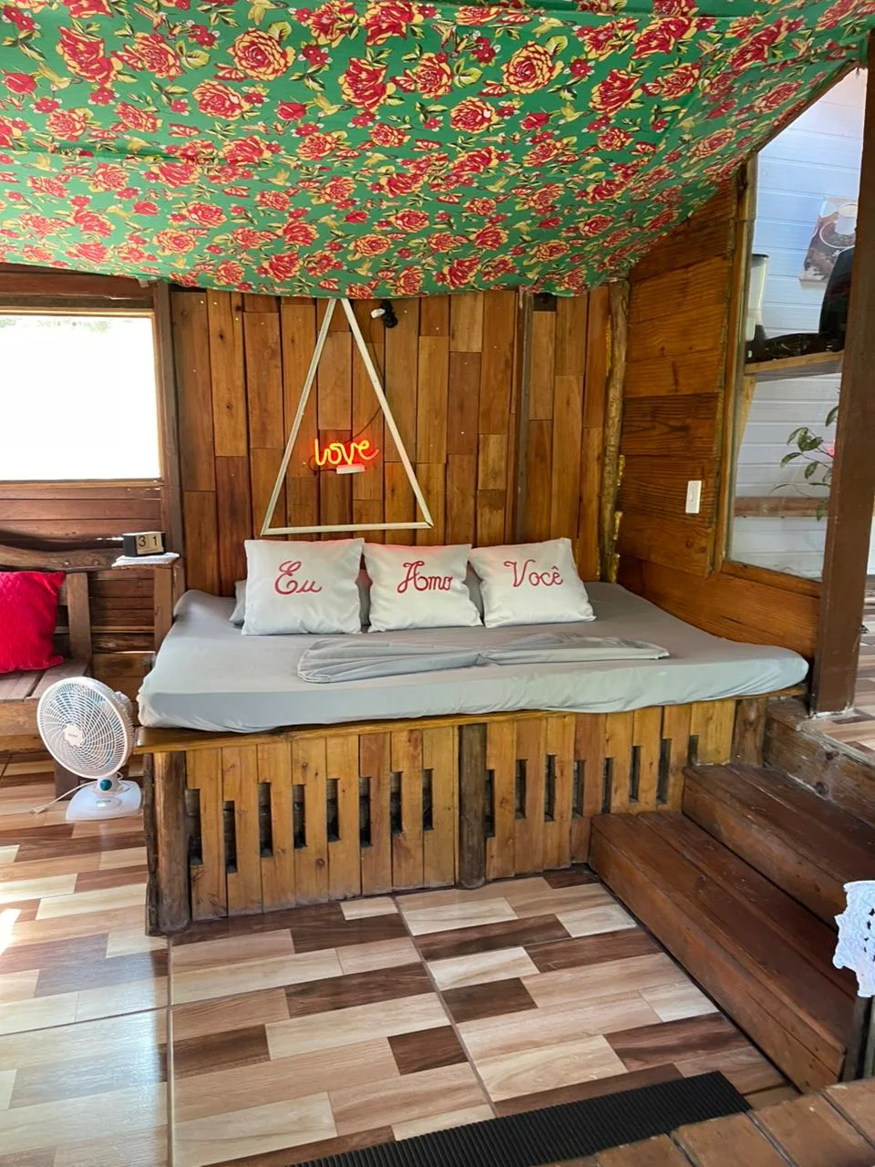Acomodações rústicas que proporcionam conforto e liberdade.